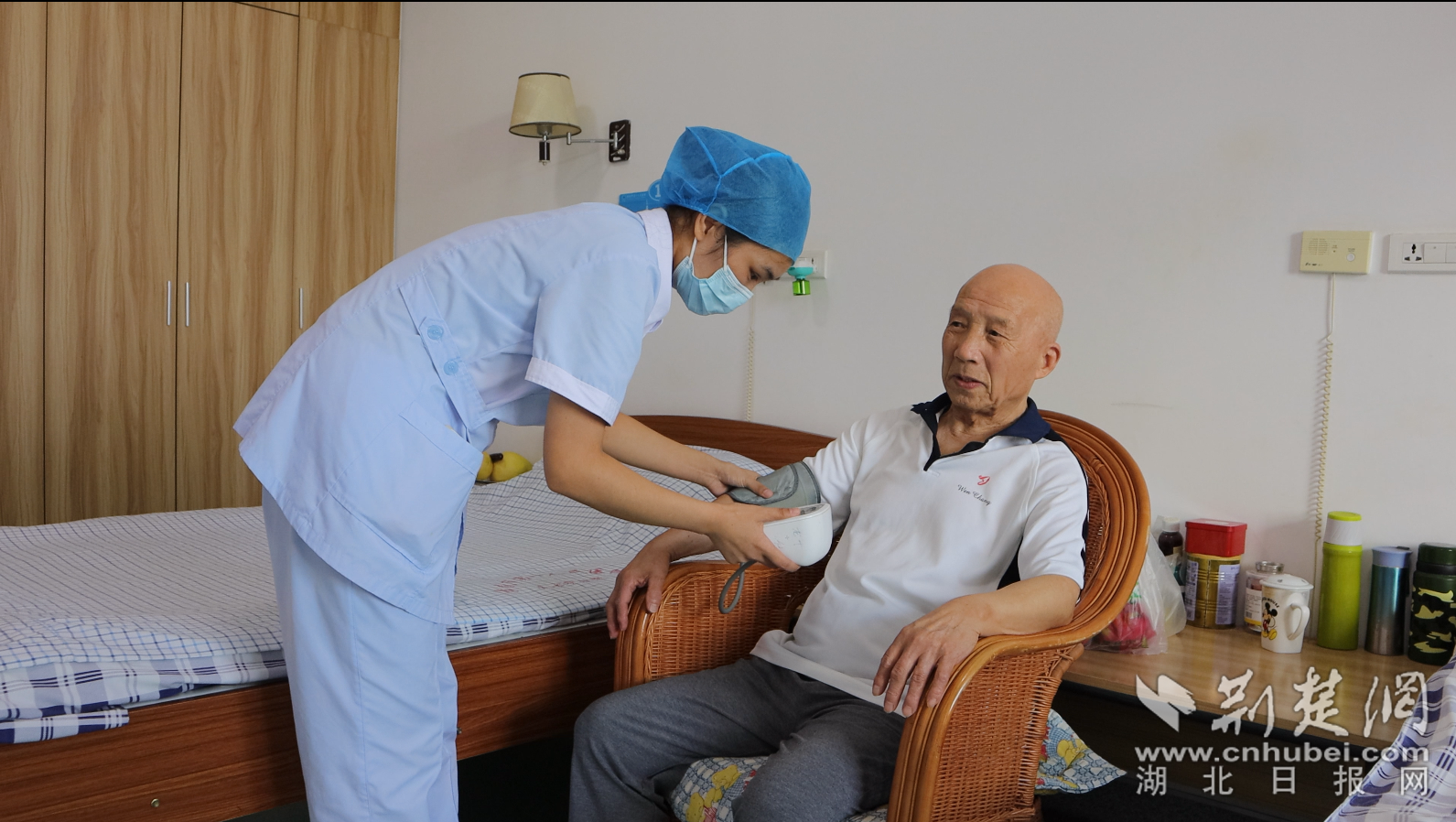 84岁的吴爹爹因病转入老年病科,在医生的治疗下,病情得到好转,不久将转入护理院养老状态。据爱心护理院护士长刘惠林介绍,老人生病了会启动医养结合机制,就在养老的房间住院,由医生和护士做好服务,等病好了并报销结账后,又恢复到养老常态。
