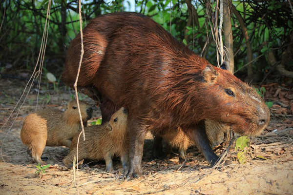 在这里,幸运的旅游者能发现活泼可爱的紫蓝金刚鹦鹉,窥探在丛林和水面雄霸一方的美洲豹、凯门鳄,还可能邂逅巴西貘、犰狳、水豚、大水獭、鬃狼等难得一见的动物。