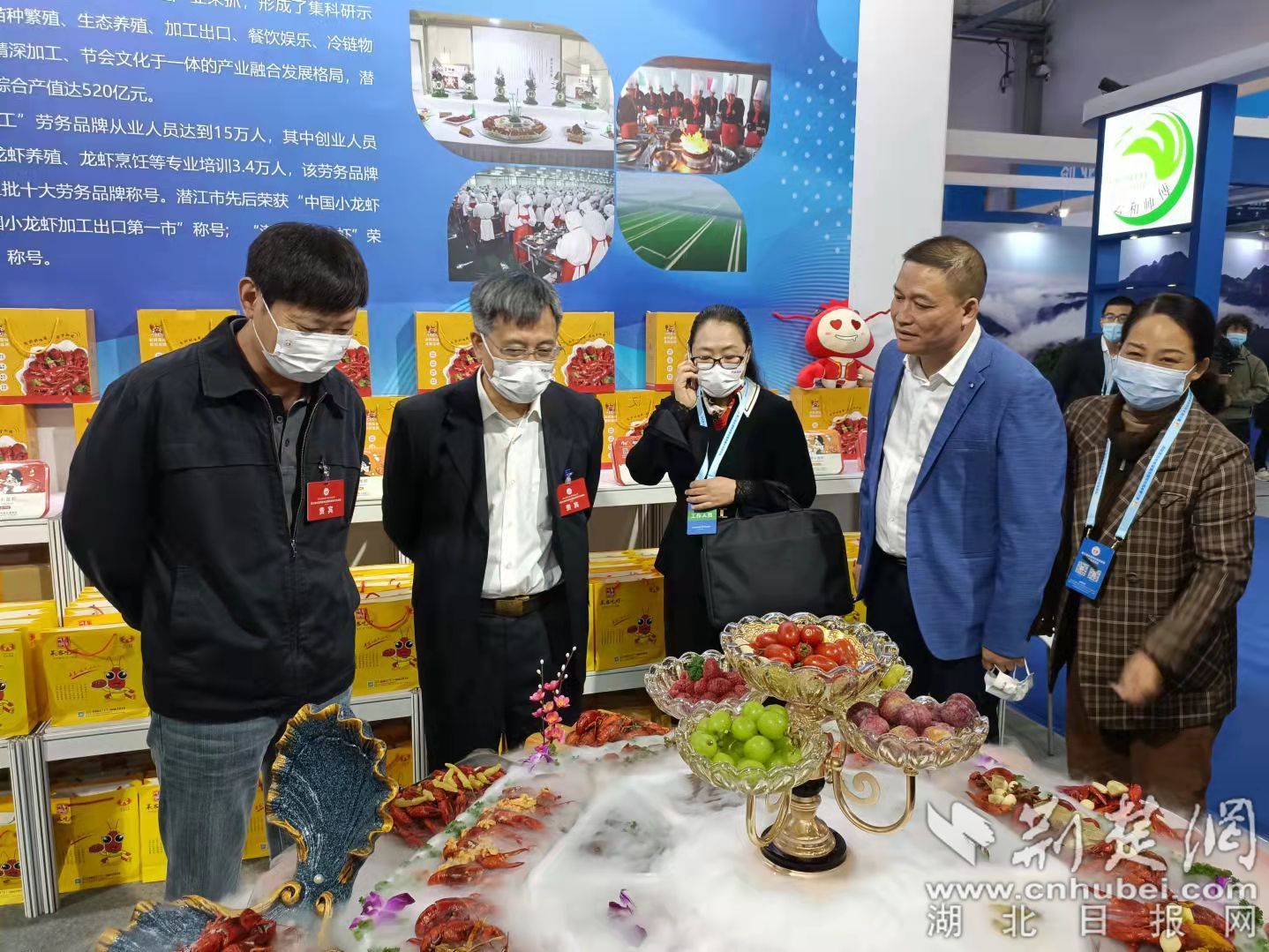 潜江馆围绕新经济、新人才、新品牌做文章,以潜江生态龙虾宴展示项目为主,采取图片、视频、实物、互动、演示等方式,突出潜江特色,展示“潜江龙虾工”劳务品牌成果。会展期间,国家人力资源和社会保障部领导及部分省市嘉宾观摩了潜江馆,对潜江生态龙虾宴展示项目非常关注,对潜江围绕特色产业打造劳务品牌表示了充分肯定。省人力资源和社会保障厅副厅长董长麒询问了展馆的布展情况,鼓励工作人员以饱满的精神状态,宣传“潜江龙虾工”劳务品牌成果,同时持续做好劳务品牌发现培育、发展提升、壮大升级工作。