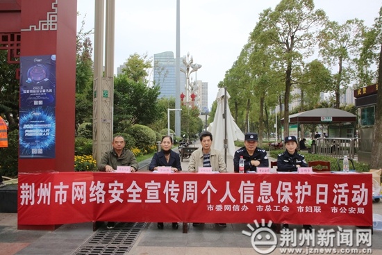 荆州新闻网消息(记者 肖琦 通讯员 赵银超)为积极营造“网络安全为人民、网络安全靠人民”以及“网络安全人人有责、人人参与”的良好社会氛围。10月14日下午,市总工会、市妇联在荆州市火车站站前广场以展板、海报、宣传折页等形式,向广大职工群众宣传《网络安全法》和《个人信息保护法》。市委网信办、市妇联、市公安局网安支队有关领导、专家出席活动。