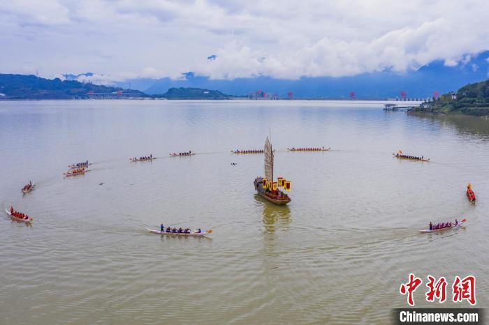 大赛前举行龙舟游江仪式。 聂爽 摄