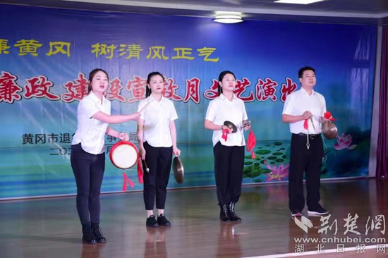 荆楚网(湖北日报网)讯(通讯员 杨阳)10月18日晚,黄冈市退役军人事务局七楼会议室灯火通明、人头攒动、掌声阵阵。由市退役军人事务局举办的“创清廉黄冈,树清风正气”2021年党风廉政建设宣教月文艺演出正在这里精彩上演。黄冈市政府办有关领导、驻人社局纪检监察组领导,局领导和机关全体党员干部、局属单位主要负责人,退役军人代表等共计100余人观看演出。