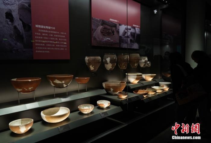 10月17日,位于河南省三门峡市渑池县的仰韶村国家考古遗址公园正式开园。图为仰韶文化博物馆里陈展的陶器。 中新社记者 阚力 摄
