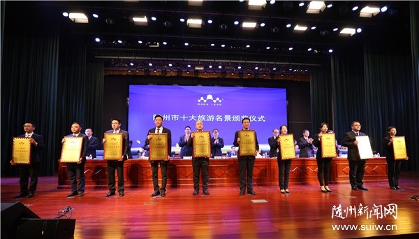 会议为十大旅游名景、十大旅游名村、十大旅游名宿授牌。随县政府、玉龙旅游集团、湖北鄂旅投随州投资集团有限公司分别作交流发言。市文旅局与中国旅行商代表签订旅行者联盟协议。最后,本届大会承办地随县向明年大会承办地曾都区移交会旗。