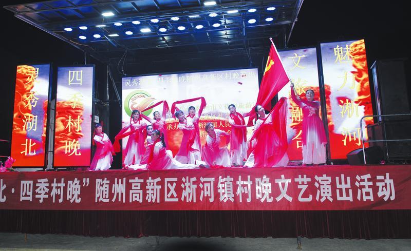 随州高新区主办的“灵秀湖北·四季村晚”日前在淅河镇老孙家湾村演出,丰富多彩的节目受到群众的喜爱。 (随州日报全媒记者孙洪涛、通讯员王涛摄)