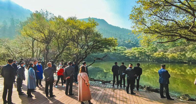 10月24日,市文旅大会嘉宾在大洪山风景名胜区白龙池参观。 (随州日报全媒记者李文军摄)