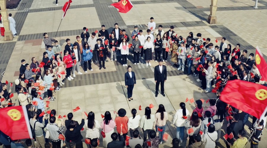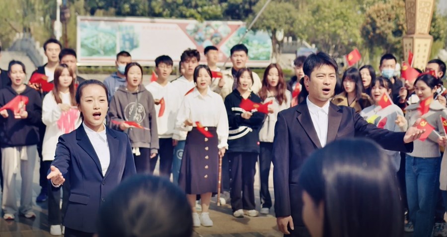 现场,歌唱表演者从人群中缓缓走出,饱含深情地放声歌唱。青年干部挥舞鲜艳的红旗,齐声共唱歌曲《清廉潜江》,共同用歌声将潜江青年的担当作为娓娓道来。精彩的表演吸引了群众驻足观看、拍照,还有不少群众主动参与进来。