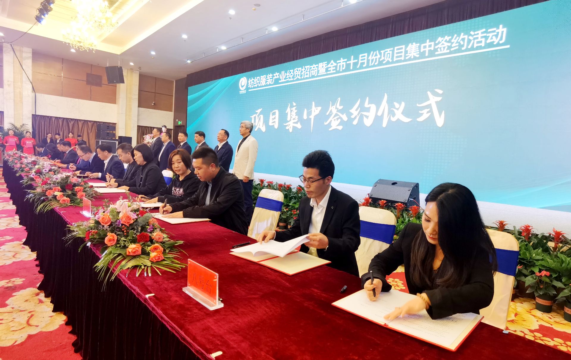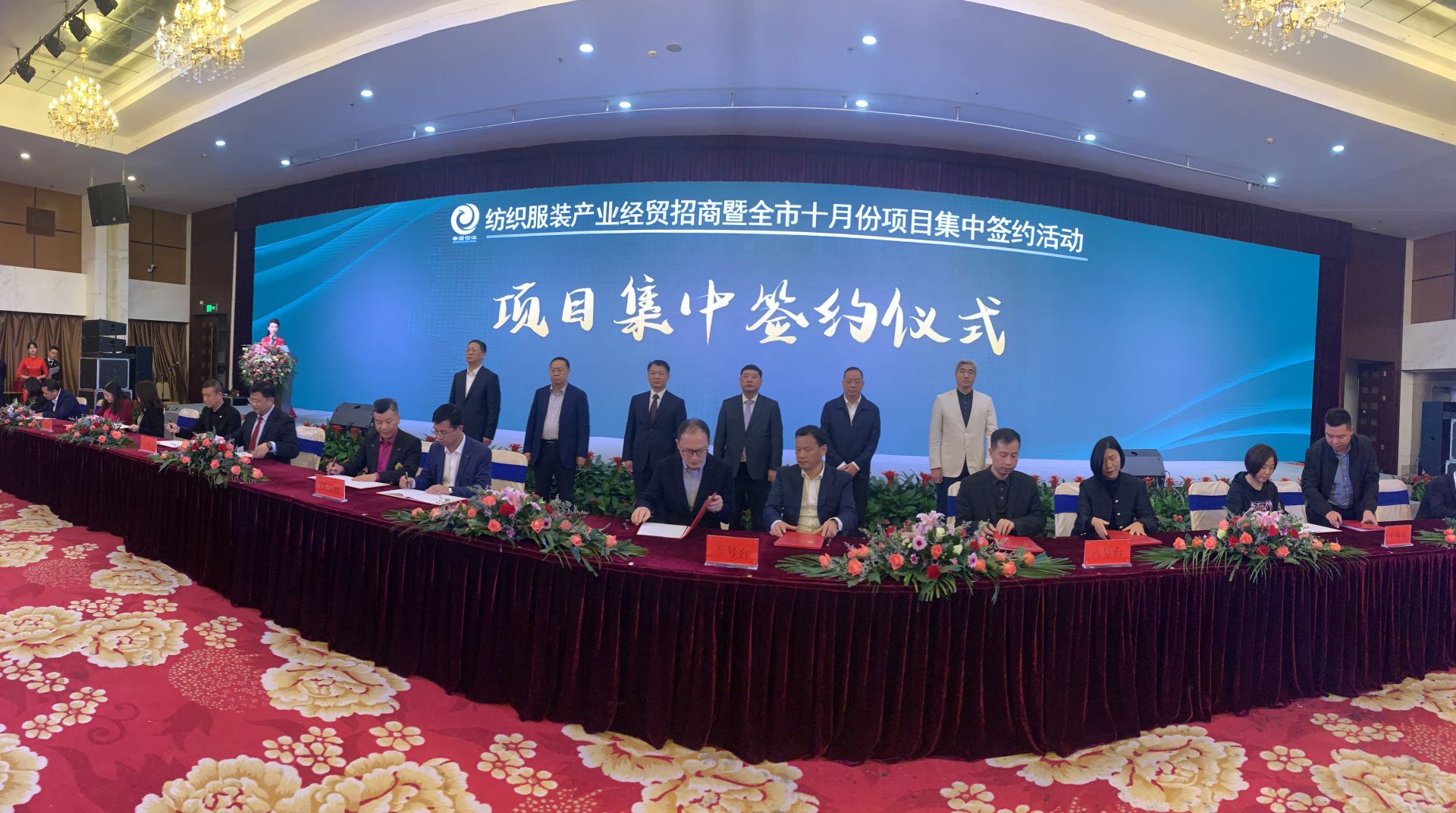 潜江新闻网讯(记者 谭欣)10月26日下午,纺织服装产业经贸招商暨全市10月份项目集中签约活动举行。经贸招商项目签约仪式分4轮进行,共签约32个项目,总投资53.1亿元人民币,其中纺织服装产业领域项目29个。