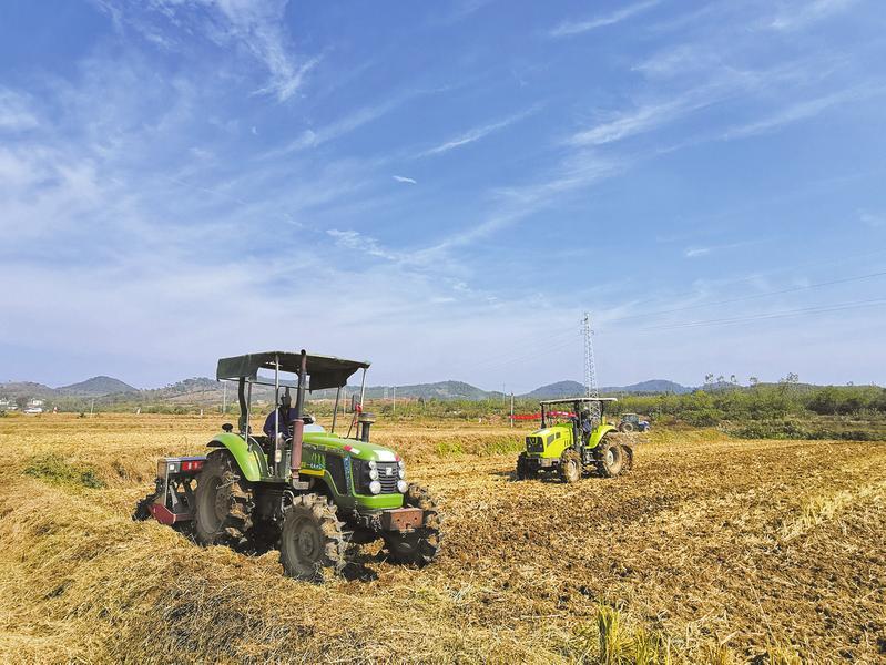 10月25日,曾都区万店镇泉水寺村,田野机声隆隆,一台台耕作机械在田间来往穿梭,一派繁忙场景。当地的事事顺种植合作社组织农民争农时、抢季节,高标准、高质量抓好小麦播种。(随州日报全媒记者陈巧玲摄)