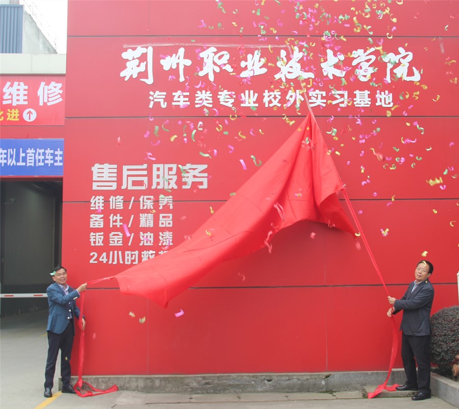潜江新闻网讯(记者 王宇杰)进一步深化校企合作,实现专业与企业、岗位对接,让学生提前步入职场,抢抓就业机会,10月27日,荆州职业技术学院与潜江市利通汽车服务有限公司举行校企合作签约暨揭牌仪式,双方就人才培养模式、平台发展等方面展开交流,达成合作共识,进一步推动产教深度融合。
