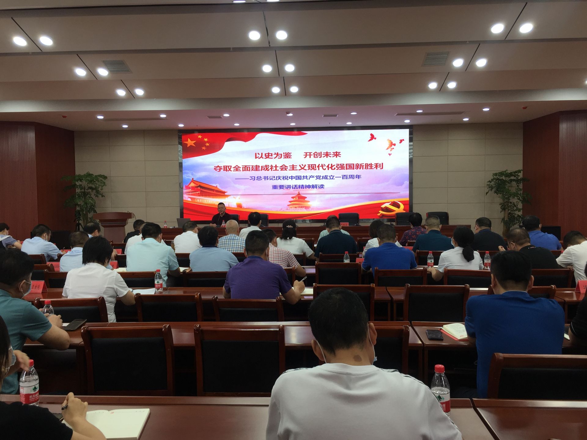 彭校长以《以史为鉴 开创未来——夺取全面建成社会主义现代化强国新胜利》为题,从深入领会全面建成小康社会的历史性成就、深入领会党团结带领人民不懈奋斗的光辉历程和伟大成就、深入领会伟大建党精神的丰富内涵和时代价值、深入领会以史为鉴、开创未来的根本要求、深入领会习近平总书记代表党中央发出的伟大号召等5个方面进行了深入系统的讲解。