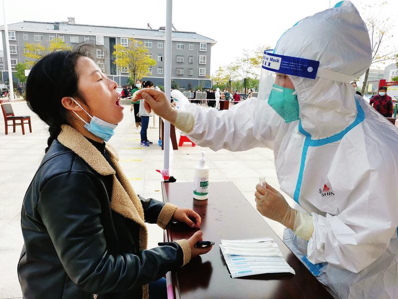10月28日,广水市郝店镇在红花山村开展新冠肺炎疫情全员核酸检测应急演练。此次演练采取实人参演、实装操作的方式进行。 (随州日报通讯员刘小斌、李山青摄)
