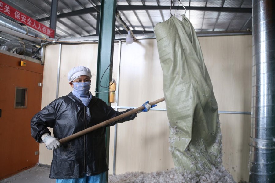 走进该街道的另一家企业——荣丰羽绒制品有限公司生产车间内,机械轰鸣声不绝于耳,工人们正将羽绒鹅毛放入生产设备中。