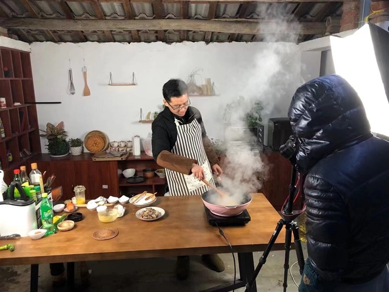在阳光中架起灶台,或煎或炒,或蒸或炸,将一篮篮新鲜食材变成一道道美味佳肴,再将过程拍为小视频传递美味——成为美食创作者后,这是“喂谷美食记”最主要的工作。