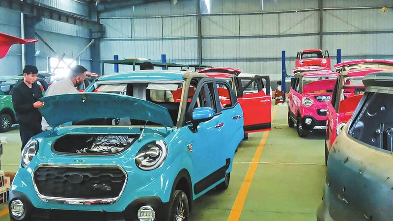 湖北易安达新能源汽车有限公司抓住市场机遇,研发的纯电微型轿车以经济实惠、外观新颖时尚、续航里程长的优点,深受市场青睐,首批投产的30台产品一上市就被订购一空。该公司目前正全力扩大产能,力争到今年年底将产能由10至15台每日,扩大到30台每日,预计年底产销将突破2000台。图为客户在该公司总装线等待产品下线。 (随州日报全媒记者 李文军摄)