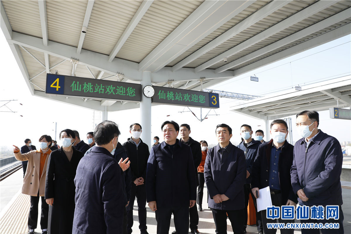 罗联峰一行察看了武仙城际铁路仙桃站及其配套工程,了解了窑河改道及站场综合开发规划情况,对321省道彭场至仙桃城区段改建工程作了实地调研。