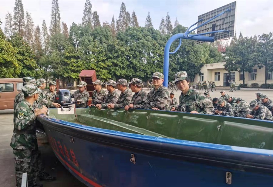 此次开展的基干民兵入队训练,严格对照民兵军事训练大纲要求,重点就擒体拳、队列训练、抢救伤员、冲锋舟操作、军事法规、军兵种知识等内容进行训练。