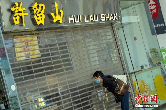 11月28日,香港“许留山”位于油塘的大本型商场的加盟店没有营业。该店日前宣布将于今年11月底结业。图为市民在店外拍照。 中新社记者 陈永诺 摄