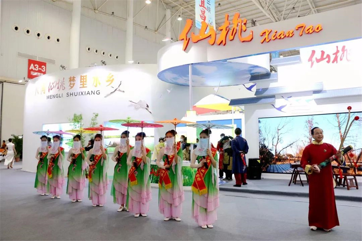 仙桃展馆占地210平方米,围绕“人间仙桃 梦里水乡”的总体定位,展示仙桃独有的水乡田园风光,大屏滚动播放《锦绣仙桃》《仙桃美歌美景》和“梦里水乡”“沔阳小镇”等重点景区宣传片,让大家认识仙桃、了解仙桃。