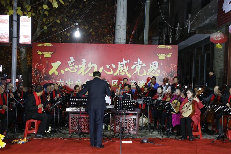 潜江新闻网讯(记者 曾俊伟)12月12日晚,在园林街道办事处南浦路社区怡景苑小区,以“不忘初心感党恩,六中全会在社区”为主题的文艺晚会开演。