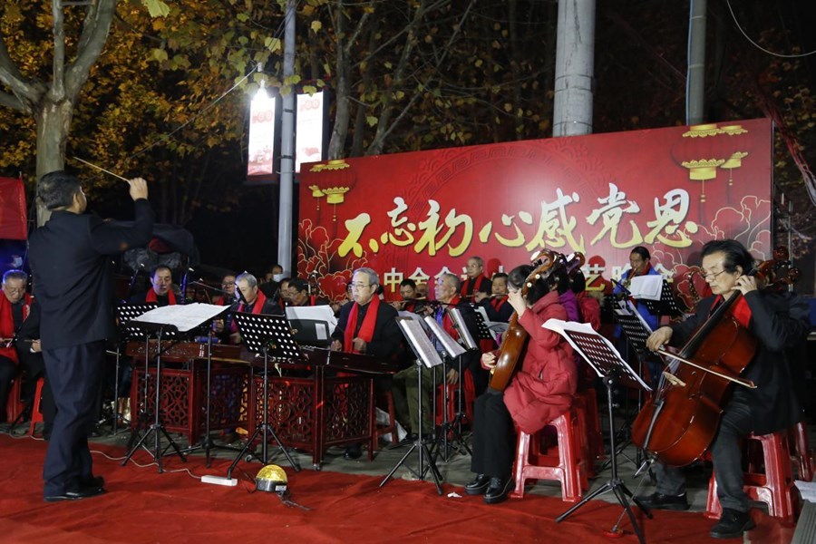 在激昂的合奏《雄伟的井冈山》中,演出正式开始。随后,包涵舞蹈、歌曲、重唱、配乐诗朗诵、大合唱等多种形式的十多个节目一一上演,全体演职人员以饱满的热情、昂扬向上的精神状态,全身心献上了最精彩的演出,引得居民们连连拍手叫绝。