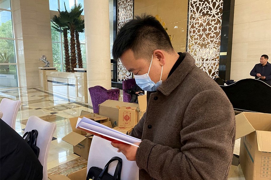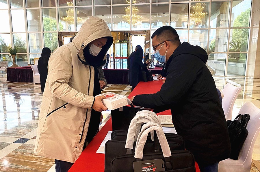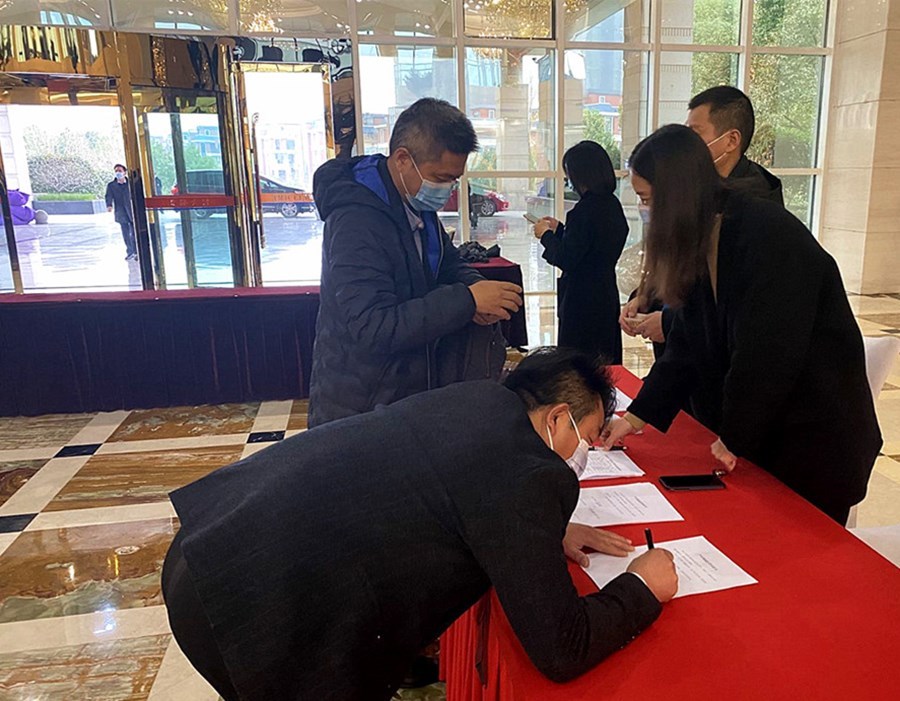 上午9点,在会议报到处,记者看到代表们佩戴口罩陆续抵达会议驻地,扫行程码、测量体温、领取参会证件和会议资料。有的代表一领到资料首先将代表证郑重地佩戴在胸前,有的代表则迫不及待地翻看会议资料。大家对即将召开的市九届人大一次会议充满信心和期待。