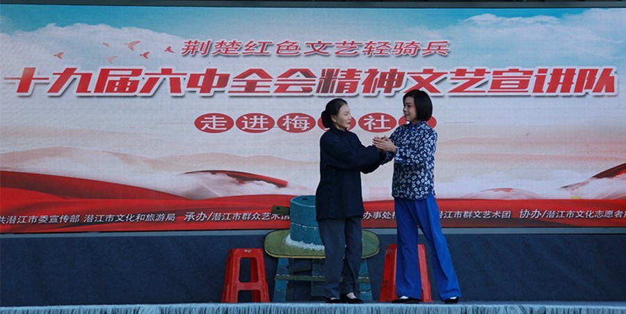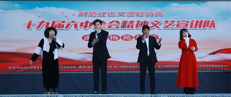 潜江新闻网讯(记者 曹以成)12月21日下午,荆楚红色文艺轻骑兵——十九届六中全会精神文艺宣讲队走进园林街道办事处梅苑社区,用通俗易懂的“文艺+宣讲”形式,将党的十九届六中全会精神传递到了群众之中。