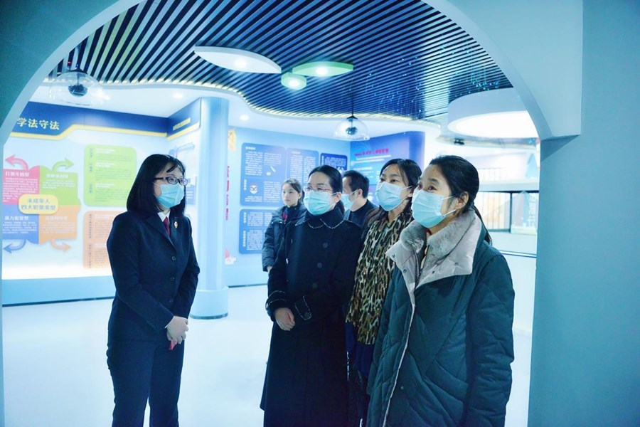 调研组一行先后到潜江市侵害未成年人案件“一站式”办案中心、未检工作区和法治教育基地实地调研,了解“一站式询问室”和法治教育基地的使用情况,与未检办案检察官进行细致交流。