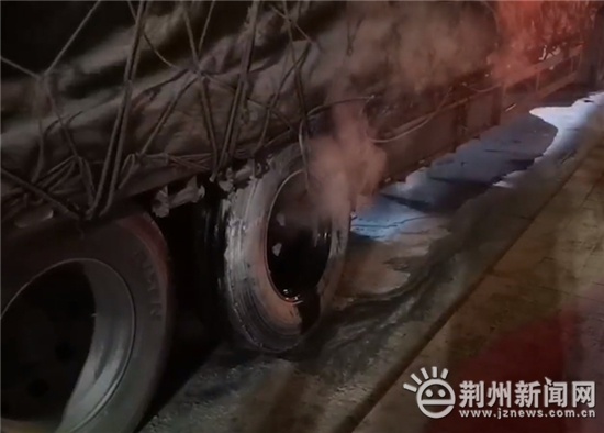 荆州新闻网消息(记者 彭军 通讯员 郭帅)行车途中发现轮胎冒烟怎么办?这位司机竟然“淡定”驾驶了十几公里,并最终起火燃烧,幸亏高速交警及时救援才未造成进一步损失。