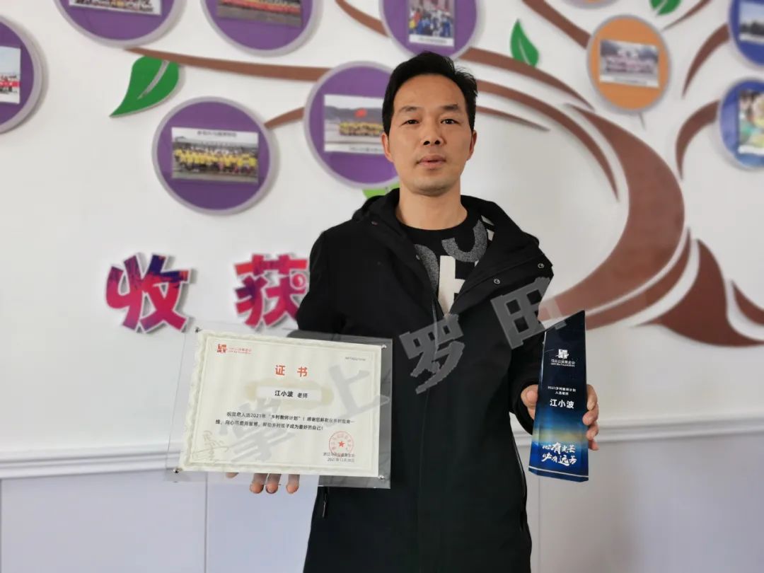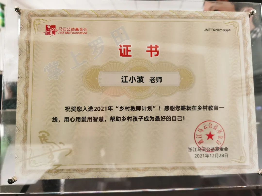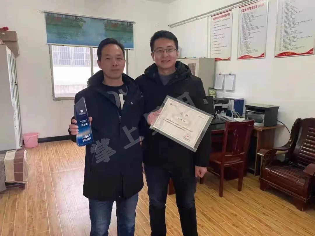 “使者”现场为他颁发了“2021乡村教师计划”入选证书和奖杯,视频那头响起热烈的掌声!惊喜真的来得太突然了!江小波激动不已,眼眶有些湿润。