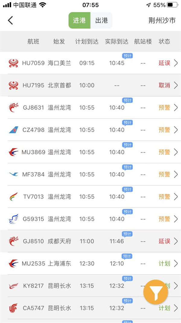 1月15日,因大雾和公共安全原因,荆州沙市机场2趟航班延误,2趟航班取消。