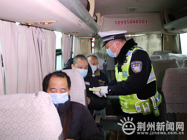 上午8时,记者跟随民警来到荆州客运枢纽站,民警随机对正在运行的客运车辆进行抽查,对驾驶人及营运车辆安全措施等情况进行督导。在发放交通安全资料的同时,民警提示旅客戴好口罩,系好安全带。