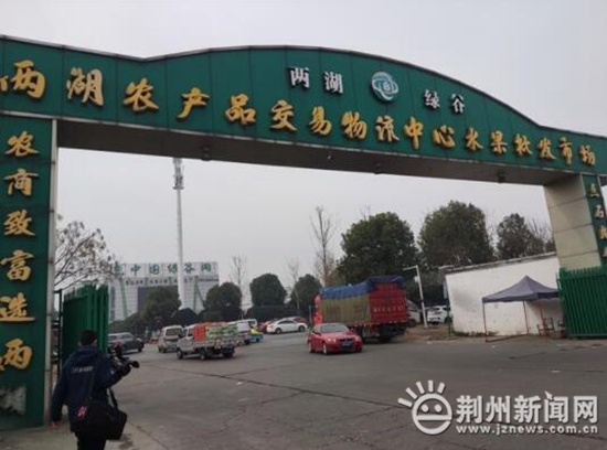 在两湖水果批发市场,水果摊上摆满了各种各样的水果,前来选购的市民和车辆络绎不绝。