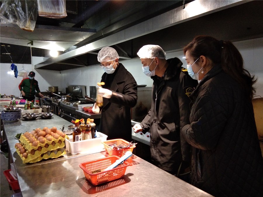 执法人员现场检查网络外卖餐饮经营单位原材料进货情况