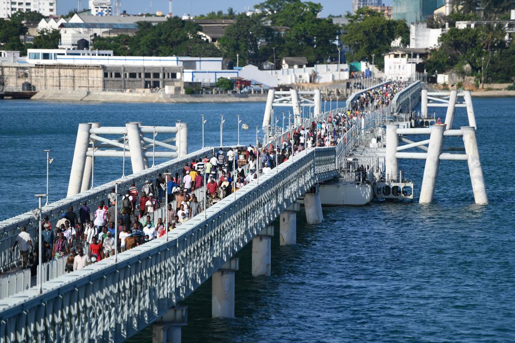因此,肯尼亚政府决定建造一座跨海浮桥。2020年9月,利科尼浮桥项目正式启动,并于当年12月10日完工。如今,全长近2千米的浮桥日均通行人流量达30万人次。浮桥还设有186米可开启段,以保证进出港口的船舶通行。目前,轮渡主要用于运输跨海车辆。