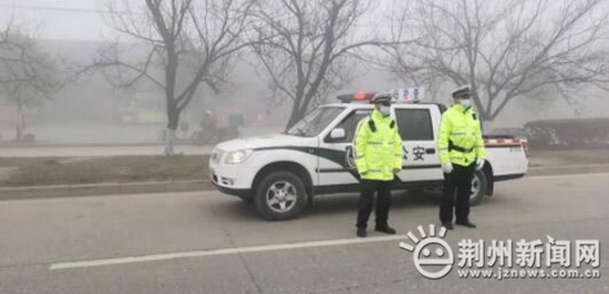 荆州新闻网消息(记者沈秋 通讯员周健)1月19日清晨,松滋出现大雾天气,整个城区白茫茫一片,部分路段能见度不足5米,给市民出行带来了严重的安全隐患。为保障群众出行安全,预防交通事故发生,松滋市公安局交警大队迅速启动恶劣天气交通管理应急预案,加派警力进行巡逻管控。