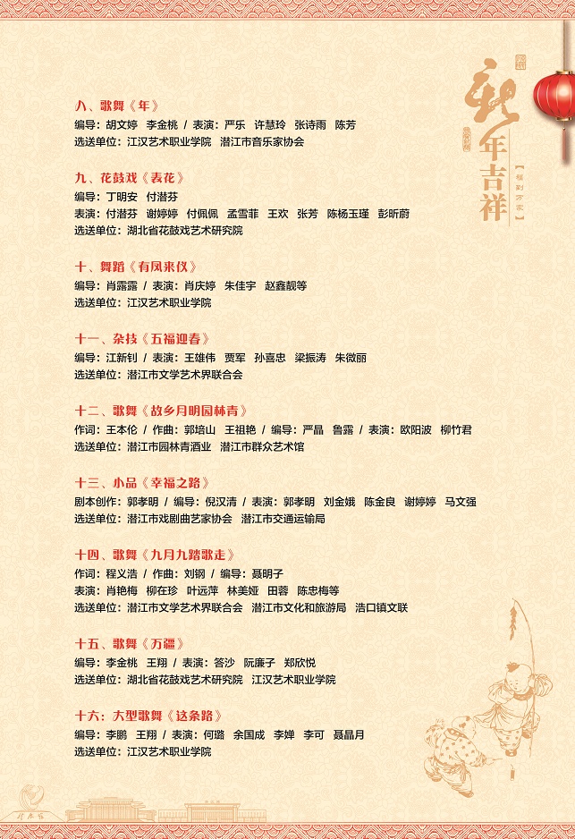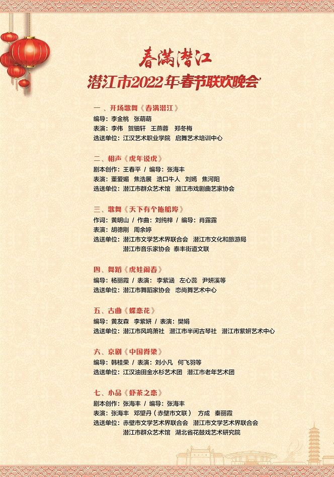 附:“春满潜江”潜江市2022年春节联欢晚会节目单