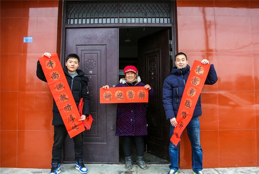 潜江新闻网讯(通讯员 刘云琪 刘波)料峭寒冬意犹在,文化惠民暖心窝。为营造喜庆祥和的节日氛围,不断丰富人民群众日益增长的精神文化需求,1月24日下午,市文联、市书协组织“红色文艺轻骑兵”小分队,为高石碑镇灰台村、陈岭村村民送春联送祝福。