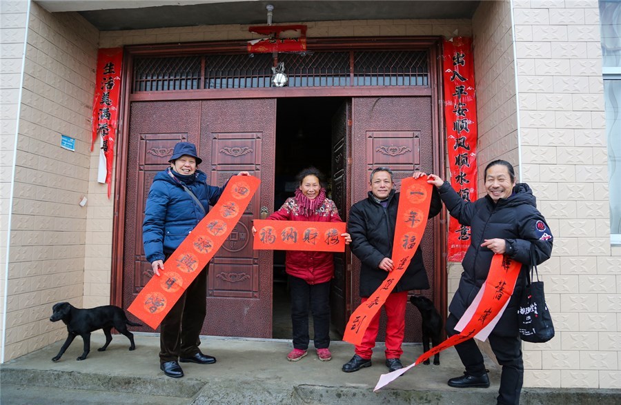 送春联小分队不仅深入到村组农户,为他们送去春联和春节祝福,还与村民促膝谈心,详细询问他们的日常生活、生产、身体健康等情况,同时积极宣传十九届六中全会、中国文联十一大会议精神。