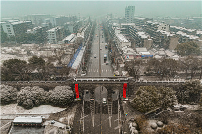 1月28日,荆州市区大街小巷雪花纷飞。一夜之间,城市悄然“换装”,美若仙境。洁白的雪花漫天飞舞,飘落屋檐、树枝,将冬日的城市装扮得宛如一幅素雅的水墨丹青。