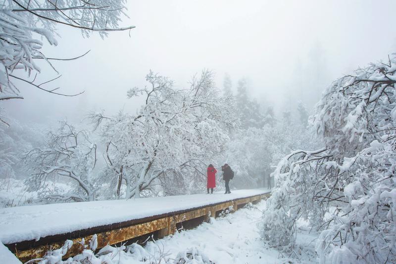 1月28日,大雪之后的大洪山风景名胜区一片洁白世界,雾淞、雪淞,冰清玉洁,晶莹剔透,让人仿佛置身在人间仙境里。 (随州日报全媒记者李文军、通讯员万明金摄)
