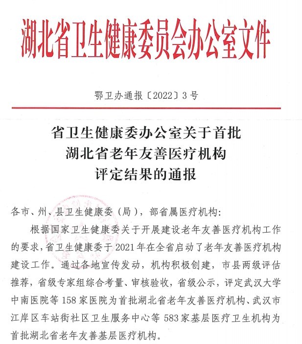 潜江新闻网讯(通讯员 王晓文别业爽)1月29日,笔者从市卫健委获悉,我市申报的12家医疗机构顺利通过省专家集中评审与书面复核,成功创建成为省级老年友善医疗机构。