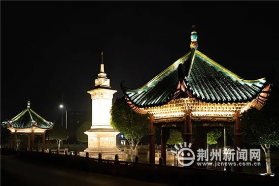 项目改造前,这里的基础照明灯以太阳能为光源,夜间照明效果较暗,为了满足市民和游客夜间的活动需要,提升滨水慢行道的形象,激活夜间旅游经济发展,文旅投和荆州文创园投资2900万元,对地标节点的光环境与周边光环境进行提升维护。