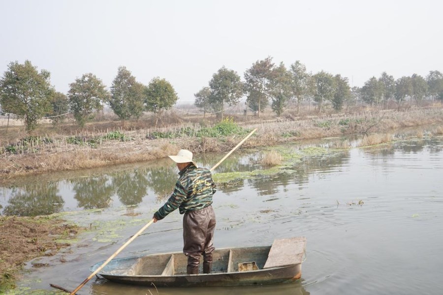 潜江新闻网讯(记者谭欣 通讯员 曹体康)“由于蒸发损耗,昨天刚给塘中补了水,目前深度在50厘米左右,要维持深水保温。”腊月二十六,春节前夕,在运粮湖管理区南湖办事处一支沟南湖队的一块虾田里,养殖户刘玉华正划着小船查看虾苗生长情况。