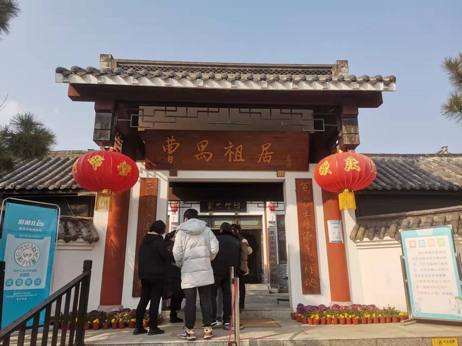 市民刘先生带着孩子正在登记。刘先生工作以后,一直居住在宜昌,今年回家乡潜江过年,赶上这两天的晴好天气,所以带着孩子过来看看,作为潜江人,刘先生希望孩子也能够知曹禺,爱潜江。