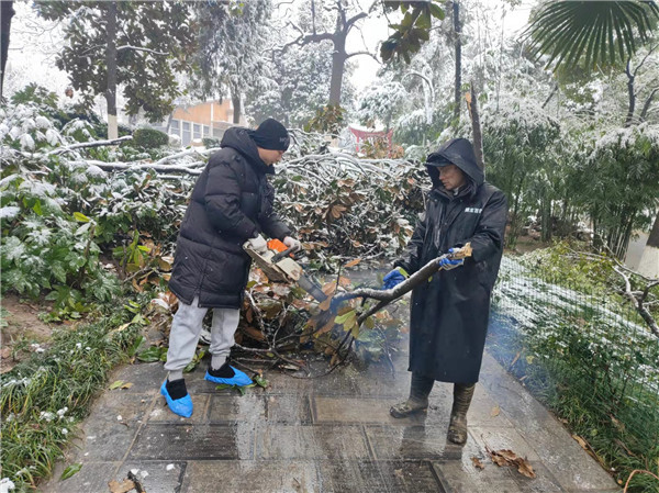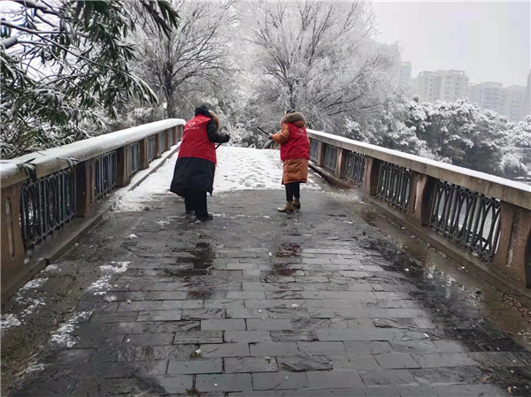 为保障游客安全赏雪观景,2月7日上午,市公园管理处安排全员到岗,针对中山公园、文湖公园、玉桥公园、临江仙公园等区域积雪,及时开展扫雪、清障行动。