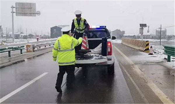 为全力保障群众平安出行,市公安局高警江陵大队、江南大队提前研判部署,通过提前布警、全警出动,进一步强化巡逻管控力度,同时结合沿线电子屏开展信息预警和出行提示。在各县市区,各大队以雪为令,通过临时管制、融雪除冰、引导分流、鸣笛喊话、温馨劝导等方式,确保群众平安出行,道路安全畅通。