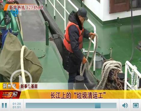 隆冬时节,江面寒风料峭。早上不到8点,陈景旭、孙红艳夫妇的“荆长净6”垃圾清运船准备起锚出发。