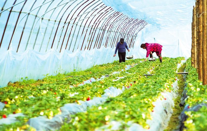 眼下,乐鲜农业科技产业园草莓进入采摘季节。据介绍,新鲜的草莓在满足当地消费市场的同时,通过网络等渠道销往省内外。 (随州日报全媒记者 孙洪涛摄)