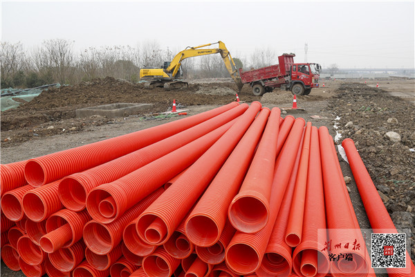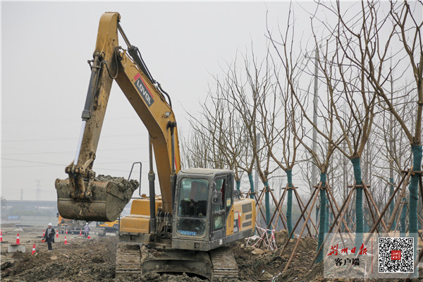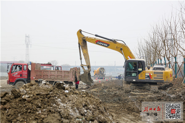 2月11日,在长湖大道改扩建(关沮大道至清河路)项目建设工地上,各类大型机械设备正抓紧施工,现场一派繁忙景象。